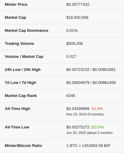 Until a few months ago, the Minter network was near it's lower end values and with the strong ecosystem and community we believe this coin is currently highly undervalued.